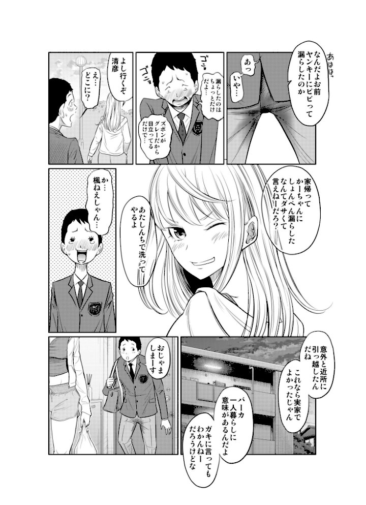 ある日、公園で幼なじみで年下の弱男「清彦」がカツアゲされているのを助ける。