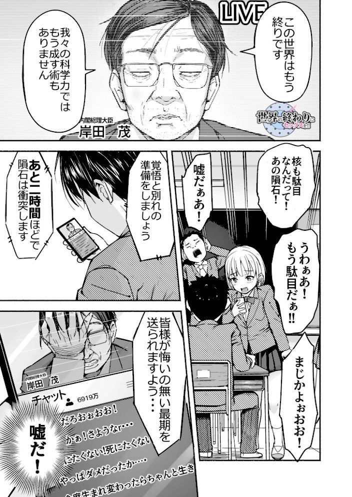 「この世界はもう終わりです。あと2時間で隕石が衝突します」