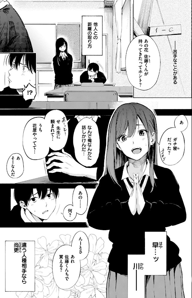 可愛くて明るい校内の人気者・早川と、クラスの端っこにいる根暗男子・佐藤(さとう)。
